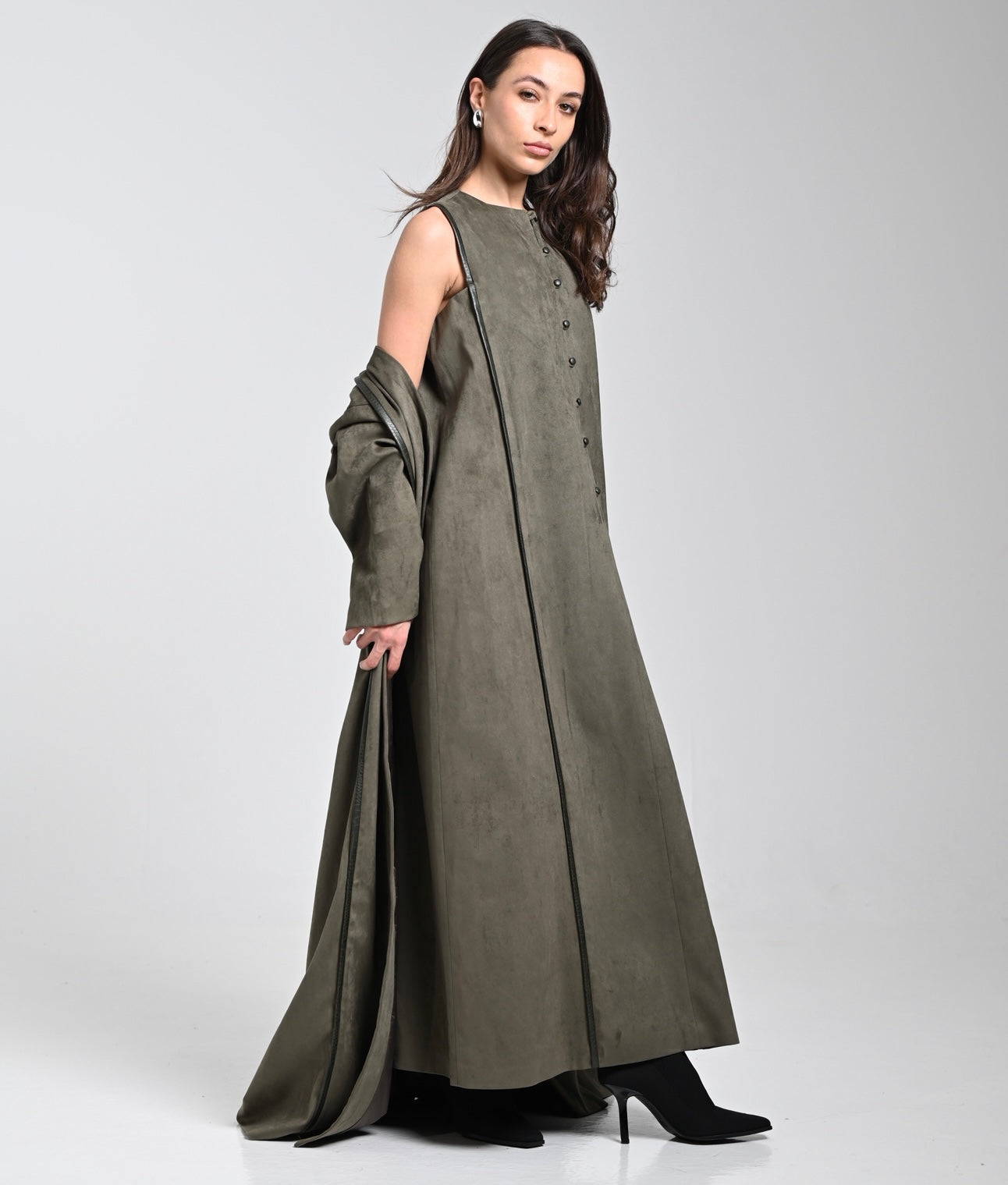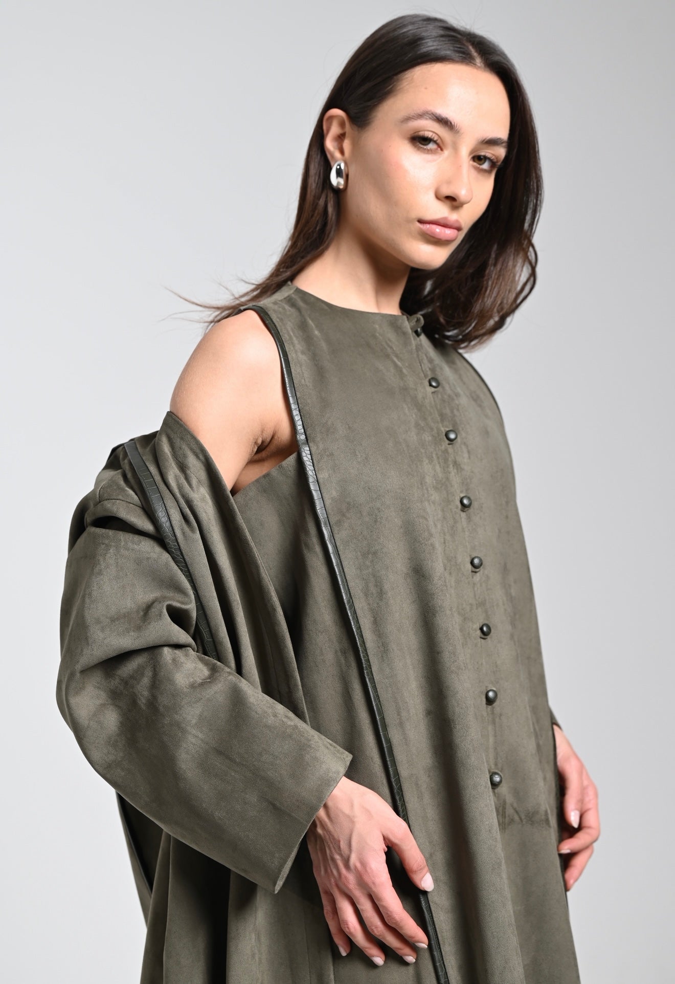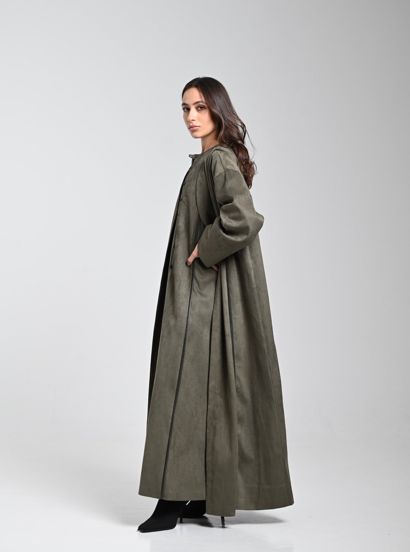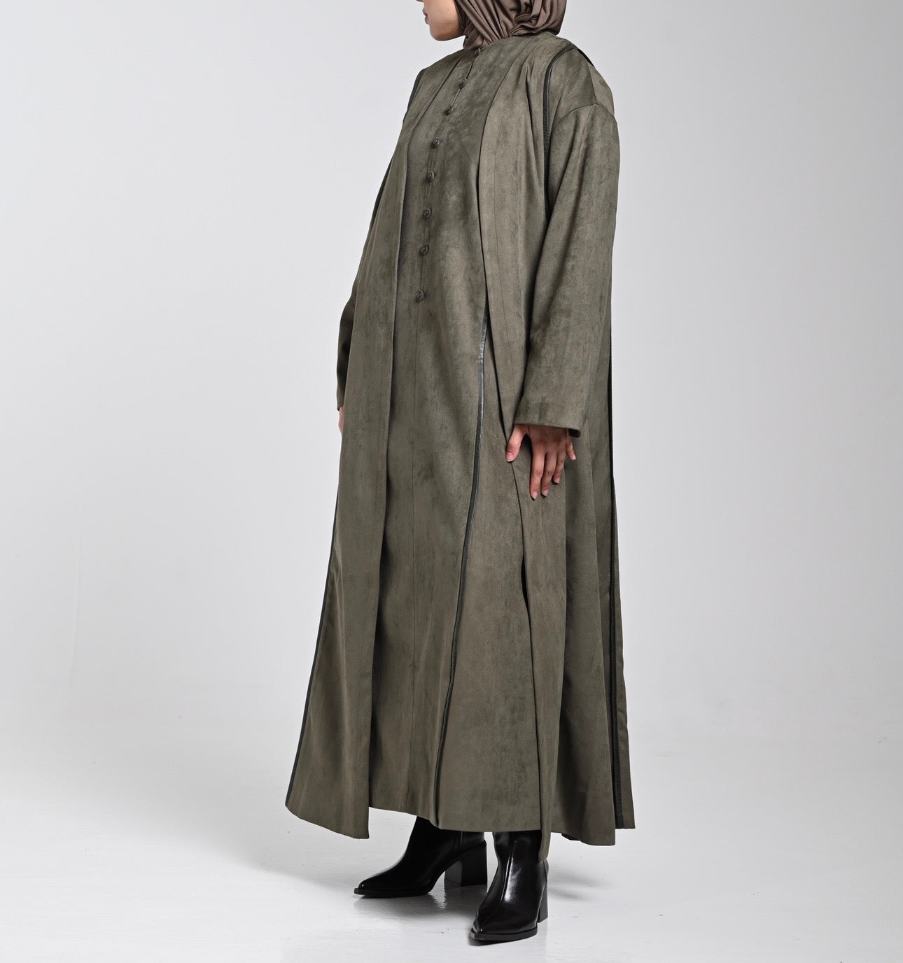 (Two pieces Set with Leather details on buttons and back of the bisht)